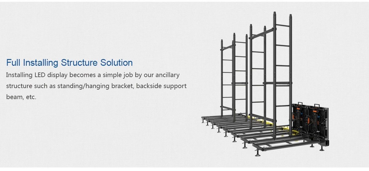 Rental LED display screen is normally been used for event purpose. The cabinet normally be Die-cating cabinet, 500×500mm & 500×1000mm, and 250×250mm module, which could easily installed and disassemblied.